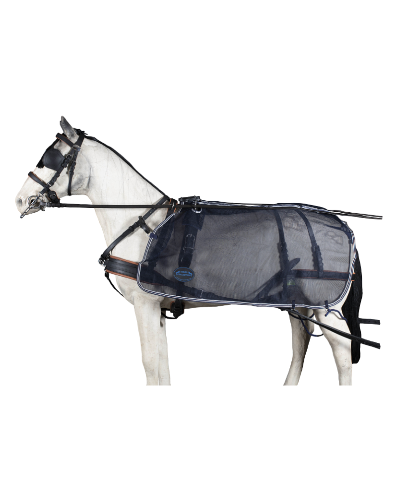 Vozová síťová polodeka navržená k ochraně koně před nepříjemným hmyzem během používání v postroji. Má otvory na otěže pro dokonalé přizpůsobení.