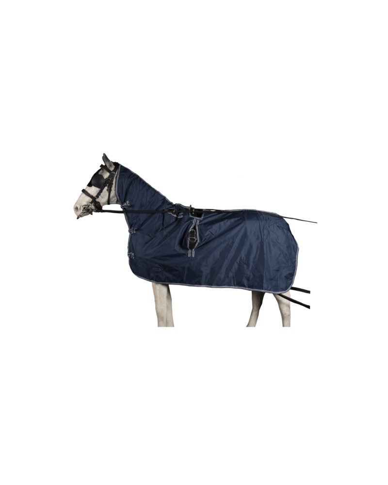 Voděodolná deka s límcem vyrobená z odolného, nepromokavého nylonu s fleecovou podšívkou. Otvory na otěže a ojky zajišťují dokonalé přizpůsobení.